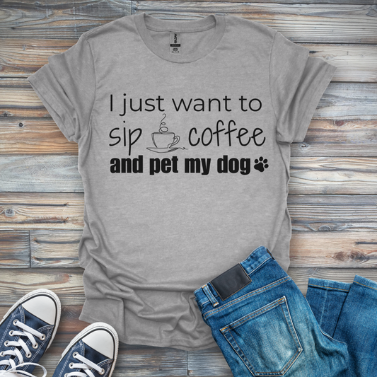 I Just Want To Sip Coffee and Pet My Dog T-Shirt